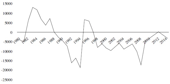 Esta articulación institucional define la estructura del modelo de desarrollo exportador y su dinámica dependiente expresada en una balanza comercial estructuralmente deficitaria (ver Gráfica 1).