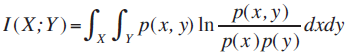 De acuerdo con Darbellay y Wuertz (2000), la entropía mutua o coeficiente de información mutua I (X; Y) entre un par de variables aleatorias continuas se define como: