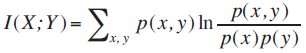 Donde p(x, y) es la función de distribución conjunta y p(x) y p(y) son las funciones marginales de distribución.En el caso discreto el coeficiente de información mutua queda definido por: