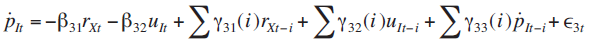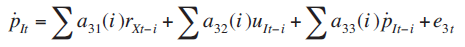 Dado que las ecuaciones (9) y (12) incluyen las expectativas de precios, es necesario incorporarlas dentro de la hipótesis de expectativas racionales ya que utilizan toda la información del sistema para anticipar esta variable. Asumiendo también que el sistema se encuentra en empleo pleno, al sustituir (9) en (12), se puede obtener un sistema de vectores autorregresivos en su forma estructural:3