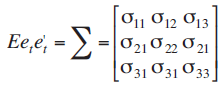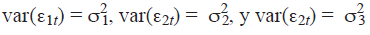 Las letras aij y eit representan los parámetros del sistema y los términos error (con media cero y varianza constante) respectivamente.
