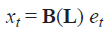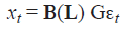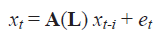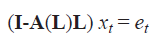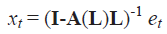 A(L) una matriz nxn con Aij(L) elementos. Esta matriz es el polinomio de orden “p” en el operador de rezagos L. Dado que las variables son estacionarias para establecer los supuestos teóricos, la matriz xtsigue una representación de media móvil (Blanchard Quah, 1989:657, 669):