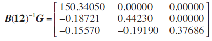 Partiendo de un sistema de vectores autorregresivos que consta de 12 rezagos de acuerdo a los criterios de selección Akaike, Schwartz y de máxima verosimilitud, la matriz B(12)G tiene los elementos de la diagonal principal iguales a cero. Lo que va acorde con las restricciones impuestas