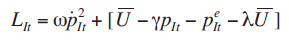 Donde (1) es la función de pérdida del gobierno con: ω (>0); es el peso que el Gobierno le da a la inflación en comparación con el peso que se le da al desempleo, es la tasa de