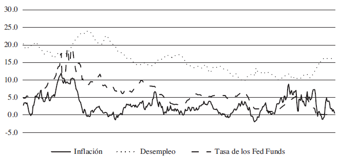 Dado que la política monetaria de Estados Unidos trabaja con objetivos específicos y, por ende, con reglas monetarias, los efectos inflacionarios que pueda tener esta sobre la Isla dependerán de la utilización de reglas de política monetaria, como, por ejemplo, la regla de Taylor. Es por esto que una parte significativa de las desviaciones de la tasa inflacionaria, de su tendencia de crecimiento de largo plazo, se explica por los impulsos en la tasa de interés de los fondos federales de Estados Unidos. Además, puede que exista una posible relación positiva del consumo, y cambios simétricos en precios, con respecto a la riqueza financiera estadounidense. Bajo esta premisa, no existirán diferencias entre el comportamiento de los índices de precios en la economía de la Isla y aquellos correspondientes al sistema financiero estadounidense.