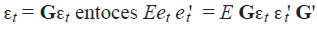 El problema aquí surge al identificar los valores no observados de Sin embargo, si se conocieran los valores de la matriz G. se pueden obtener los choques estructurales. Considerando, la matriz varianza/covarianza de los residuos: