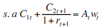 Para analizar el segundo periodo, es necesario actualizar el valor del consumo y considerar la tasa de interés real esperada y el monto del consumo debe ser igual al ingreso real que corresponde a la unidad de trabajo vendida. Por lo que en la maximización intertemporal del individuo, la tasa de consumo que tiene la población joven corresponde a su ingreso y estará dada por la expresión: