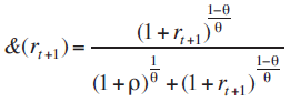 Una vez que el agente resolvió el problema de maximización de la utilidad, se determina el consumo en el periodo t + 1 el cual será mayor o menor que el consumo en el periodo anterior, solo si la tasa de rendimiento del capital rt+1, es superior o inferior a la tasa de sustitución intertemporal ρ. Por tanto, el consumo estará sujeto a la preferencia de cada individuo por consumir en cada periodo. La proporción de la variación en el consumo dada entre la tasa de rendimiento y la sustitución intertemporal dependerán del valor de θ.