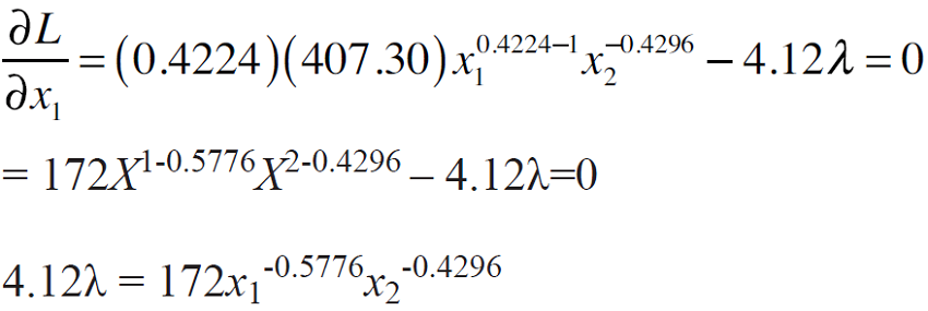 La derivada parcial de L (condición de primer orden) respecto a x1, se le llama producto marginal restringido: