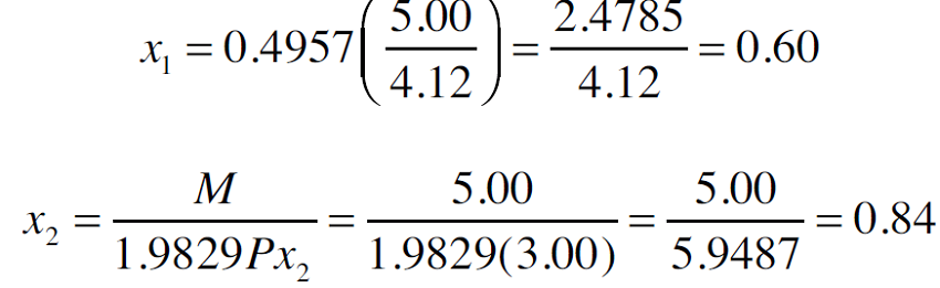 Al despejar x1 se obtiene la cantidad óptima