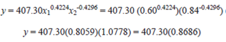 Al sustituir los valores que se obtuvieron de los insumos variables x1 = 0.60 kg y el de x2 = 0.84 kg en la función de producción tipo Cobb-Douglas seudocuadrática (Castellanos et al., 2006: 18; Frank, 2009: 90):