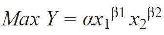 El objetivo consiste en maximizar Y = f(x1, x2), cuya función objetivo es: