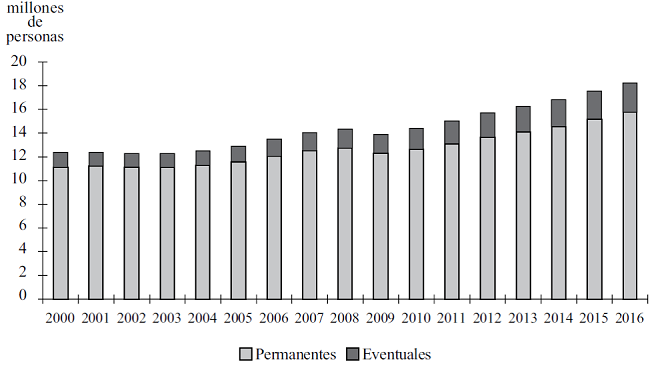 Las prácticas de flexibilidad laboral adoptadas por las empresas, han llevado al deterioro de las condiciones laborales de los trabajadores, el acceso a la seguridad social está restringida para un porcentaje de la población principalmente para aquella que percibe salarios bajos. El incremento salarial que se puede observar a lo largo del tiempo no ha resultado relevante para crear cambios positivos en los niveles de pobreza.