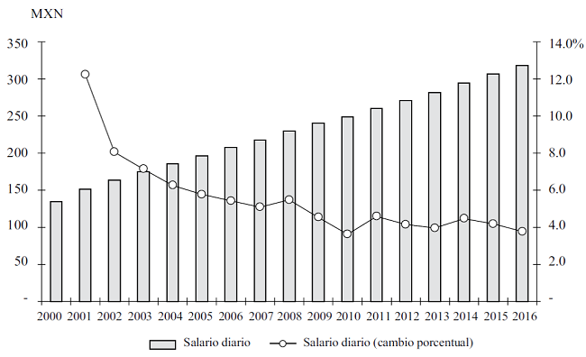 La metodología propuesta por Rubio (2010) considera a los trabajadores con insuficiencia salarial, es decir, aquellos trabajadores que perciben dos o menos salarios mínimos. De acuerdo con la Comisión Nacional de Salarios Mínimos (CONASAMI), el salario mínimo vigente para el 2016 era de $73.04 pesos diarios, aproximadamente $2,191.20 pesos mensuales, si se contrasta este ingreso con el valor de la canasta básica, se puede notar que es suficiente para situarse sobre la línea de bienestar mínimo, aunque insuficiente para cubrir la canasta no alimentaria, considerando que el ingreso sea destinado a la manutención de una persona. Sin embargo, si los trabajadores en esta situación tienen que mantener a su pareja e hijos el ingreso ya no es suficiente.