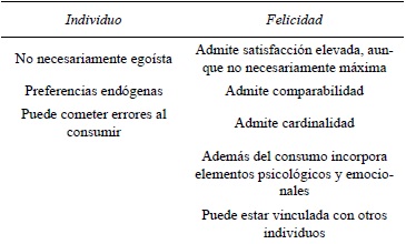 economicus, el agente maximizador, egoísta, que puede elegir el nivel óptimo de consumo. Posteriormente, se revisan propuestas complementarias a los supuestos dominantes, en cuanto al estudio de la felicidad desde la economía; la relevancia de los otros, las preferencias cambiantes, así como el elemento cardinal y comparable entre los niveles de utilidad de los individuos.