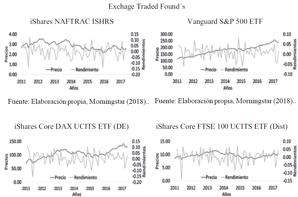 Tradicionalmente, los administradores de activos han basado la gestión de carteras en instrumentos de deuda o capital, como parte de la oferta total de los vehículos de inversión disponibles en los mercados financieros. Actualmente existen los llamados Fondos Cotizados o Títulos Referenciados a Acciones, conocidos como ETF (Exchange Traded Funds), estos son certificados de participación que representan el patrimonio de fideicomisos de inversión abiertos, y que mantienen en posición canastas de títulos que cotizan en mercados organizados, cuyo objetivo fundamental es el de replicar el comportamiento del portafolio, o índice al que están referidos (activo subyacente). Así, estos instrumentos son colocados en una bolsa de valores y permiten al inversionista comprar o vender un índice o portafolio a través de una sola acción. El hecho de que estos instrumentos sigan el comportamiento de un índice de mercado definido hace que sea posible trabajar con el subyacente, y no con el activo en el modelado de carteras de inversión, siempre que la réplica sea adecuada (Del Moral, 2013).