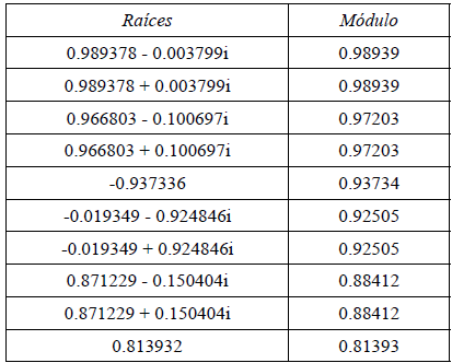 El modelo presenta igualmente estabilidad, como lo muestra la tabla 3, de resumen de raíces unitarias: