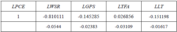 Se obtuvo un vector de cointegración que da una relación de largo plazo para las variables, expresada como ecuación normalizada, de la siguiente forma: