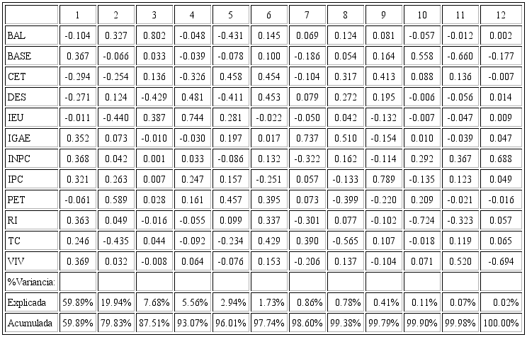Con el objetivo de construir posibles factores de riesgo sistemático que inciden en la morosidad de la cartera de hipotecas titulizadas en México, se emplea el análisis de componentes principales, dicho estudio permite analizar la variancia y covariancia de un grupo de variables originales mediante sus combinaciones lineales. La construcción de esas combinaciones lineales se realiza a partir de una matriz de datos, con el objetivo de reducir el número de variables, construir nuevas variables (componentes) y facilitar la interpretación de la estructura de sus relaciones (Johnson & Wichern, 1998). El resultado de las variables transformadas contribuye con la interpretación de los datos que no podrían ser derivada directamente de las variables originales, (Jambu, 1991). Según Hair, Black, Babin y Anderson (2010), el primer componente puede interpretarse como el único mejor resumen de relación lineal expuesta en los datos; el segundo componente como la segunda mejor combinación lineal de las variables y ortogonal del primer componente, y el proceso continúa extrayendo componentes hasta que toda la variancia es explicada.