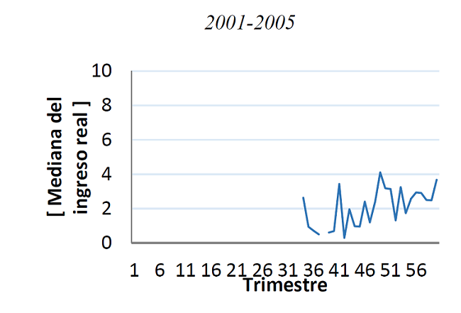 Aunado a lo anterior, es claro que la movilidad de ingresos de los trabajadores puede explicarse mediante la visión del capital específico de la ocupación y que los trabajadores con mayor nivel de cualificación formal presentan tasas más elevadas de movilidad de ingresos. Ruesga, da Silva y Monsueto (2014), hallaron que la mayor movilidad de los trabajadores informales no implica necesariamente mejores trayectorias salariales; además, estos trabajadores presentan un patrón de movilidad de ingresos limitado por la segmentación del mercado laboral. También encontraron que las diferencias de ascenso ocupacional implican que la mano de obra informal recibe bajos salarios durante más tiempo a lo largo de su vida laboral, con importantes consecuencias no solo sobre el diferencial de rentas en el país, sino también en la potencial movilidad de ingresos para aquellos ubicados en el sector informal en Brasil.