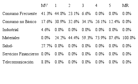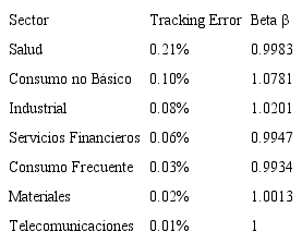 Como se observa en el cuadro 1, los sectores con mejores resultados en la réplica son: telecomunicaciones, Materiales, Salud e industrial. En general se observan buenos resultados, ya que para todos los sectores la beta es muy cercana a la unidad.