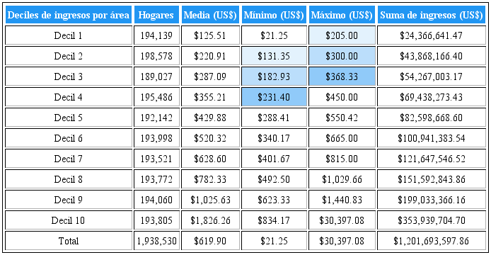*Así como también el número de personas dentro de cada decil