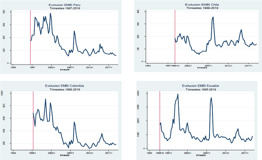 Con relación a la tasa de interés internacional, y según el estudio realizado, el riesgo país estaría determinado no solo por factores propios de las economías sino por factores externos también. Es por ello muy importante que las economías trabajen en fortalecer las instituciones para así reducir el impacto de las variaciones en la tasa de interés internacional.