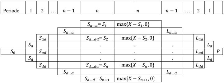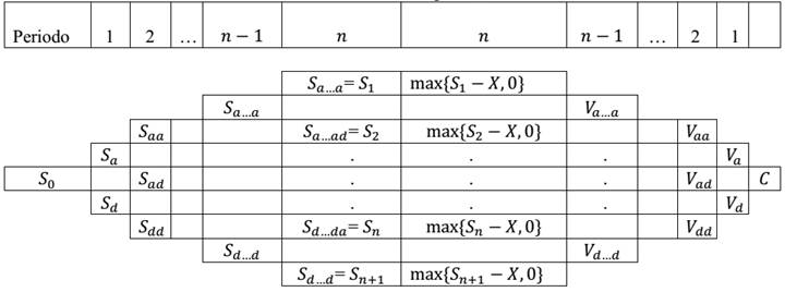Sa :Aumento de S0 con probabilidad πSd :Decremento de S0 con probabilidad θn:Número de periodosX: Precio de ejercicio pactado en el contrato