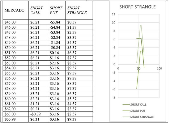 El requerimiento forzoso con los STRADDLES de que los precios de ejercicio sean iguales obliga a que normalmente una de las dos opciones financieras, el call o el put, resulte relativamente demasiado cara, encareciendo el STRADDLE, o demasiado barata, encareciendo el máximo ingreso posible con el SHORT STRADDLE. En consecuencia, se aplica la misma lógica, pero utilizando precios de ejercicio distintos, es decir, construyendo STRANGLES.