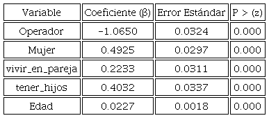 En nuestro caso, el modelo que estimamos para predecir la probabilidad de generar antigüedad superior a 3.5 años en la firma, se resume en la siguiente ecuación:27