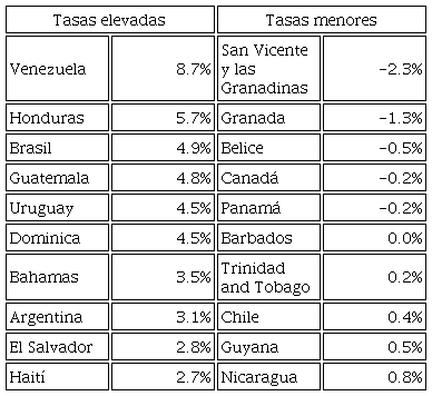 La lista completa de países analizados es: México, Bahamas, Barbados, Cuba, Dominica, Republica Dominicana, Granada, Haití, Jamaica, San Vicente y las Granadinas, Trinidad y Tobago, Belice, Costa Rica, El Salvador, Guatemala, Honduras, Nicaragua, Panamá, Argentina, Bolivia, Brasil, Chile, Colombia, Ecuador, Guyana, Perú, Uruguay, Venezuela, Canadá.