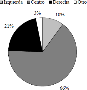 A continuación, se muestra un gráfico similar al anterior, pero considerando la ideología política, recordando que cuando se dice centro se hace referencia al PRI, y cuando se habla de izquierda y de derecha se habla del PRD y del PAN, respectivamente, ya que, según el consenso de la literatura existente, dichos partidos se pueden posicionar a la izquierda y a la derecha del PRI, respectivamente.