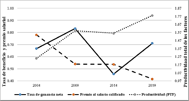 Se observa que el país ha experimentado una disminución del premio salarial, acompañado de un aumento en el progreso tecnológico, lo cual, ha favorecido al aumento de los beneficios, la demanda de empleo de baja calificación ha sido prioritaria, y no por el sesgo del cambio técnico.
