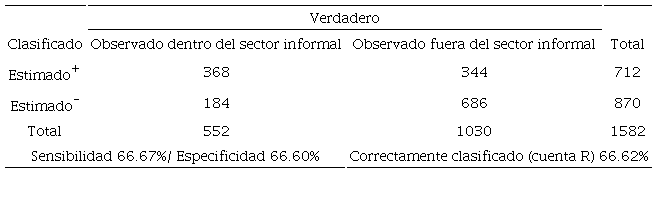 Uno de los principales aportes de esta investigación fue utilizar la especificidad y la sensibilidad para clasificar un modelo como bueno o malo. Aunque esto es comúnmente utilizado en temas de finanzas, por ejemplo, en la investigación de González et al., (2018) lo usan para detectar fraudes con tarjetas de crédito. Sin embargo, en temas de empleo informal, no se encontraron estudios que lo utilicen. De esta manera, la presente investigación contribuye al aumento de las metodologías para el análisis del empleo informal.