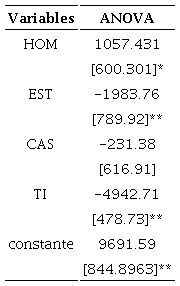 El Cuadro 9 contiene la estimación del modelo ANOVA, al igual que en modelo Probit, se usó el factor de expansión. La constante del modelo indica el ingreso promedio mensual, 9691.59 pesos, del individuo de referencia (una persona que no es hombre no estudia, no es casado y no trabaja en el sector informal)