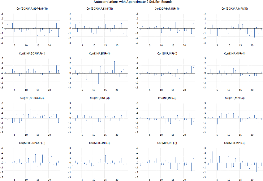 Where are the contemporary correlations among endogenous variables. Therefore, GDP gap only reacts contemporaneously to aggregate demand shocks; while monetary policy reacts contemporaneously to every exogenous shock, since is the last variable in the ordering.