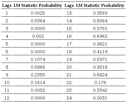 Where G0 is a nx1 vector of constants; Gj is a nxn coefficients matrix for J=1,…, p; et is a nx1 white noise innovations vector.