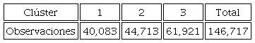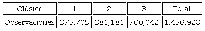 Donde |Ck | representa el número de observaciones en el k-ésimo clúster. En otras palabras, la variación entre clústeres para el k-ésimo clúster es la suma de todas las distancias euclidianas al cuadrado entre las observaciones del k-ésimo clúster, dividido por el número total de observaciones del k -ésimo clúster. Combinando las ecuaciones (1) y (2) se obtiene el problema de optimización que define la técnica de Clústeres de K-medias.