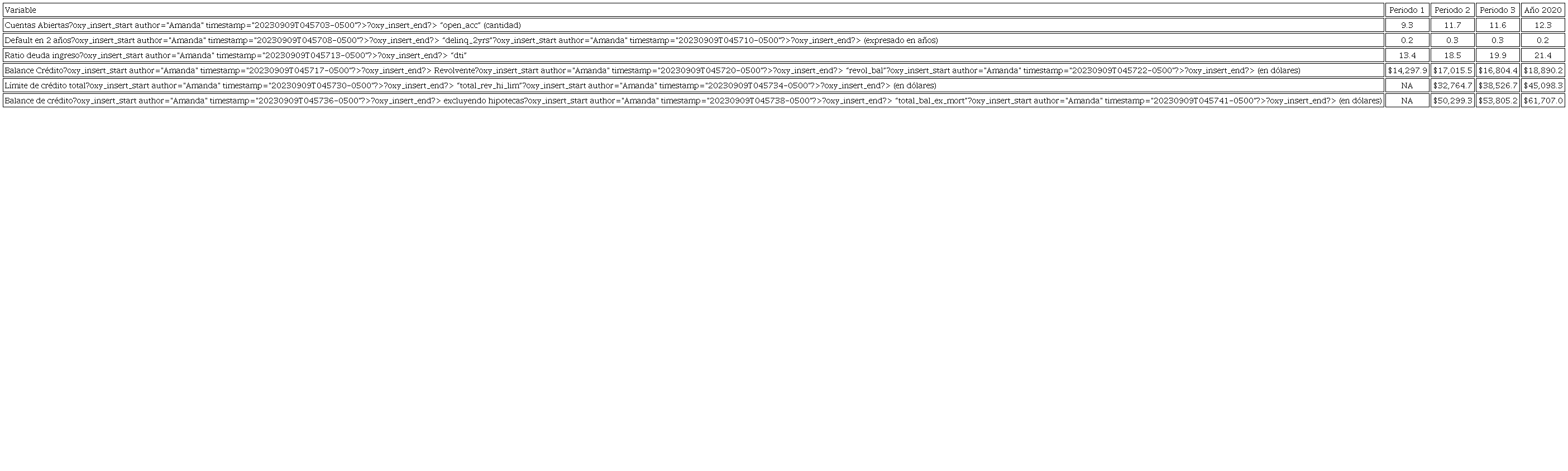 Adicionalmente, la base de datos de LendingClub presenta otras variables representativas del historial crediticio de los prestatarios, como las cuentas abiertas, el crédito revolvente utilizado, cantidad de veces que se ha presentado como moroso en los últimos dos años, cantidad de tarjetas de crédito, cantidad de cuentas en mora, bancarrotas registradas, entre otras. En la Tabla 7, se despliegan los valores medios de variables que se consideran relevantes e interpretables para identificar las características de los prestatarios.