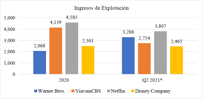 Los ingresos operacionales de las empresas en 2021 presentan resultados favorables, en comparación con los del año anterior, debido al lanzamiento de sus plataformas durante este periodo. El crecimiento de Netflix se debe a que ya existía una familiaridad con la plataforma, lo que permitió el fácil acceso y consumo para aquellos consumidores que buscaban una plataforma de servicio de streaming, a diferencia de otras que apenas se estaban dando a conocer.