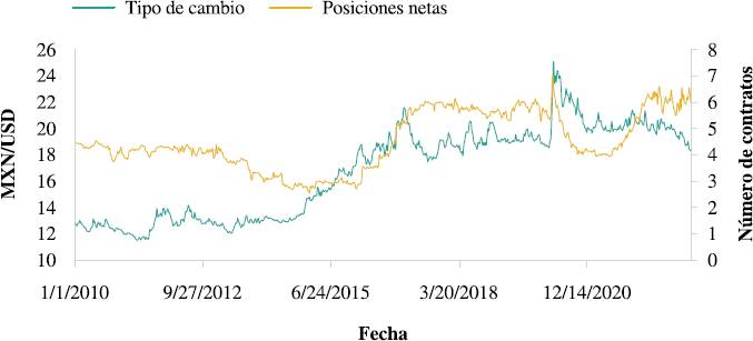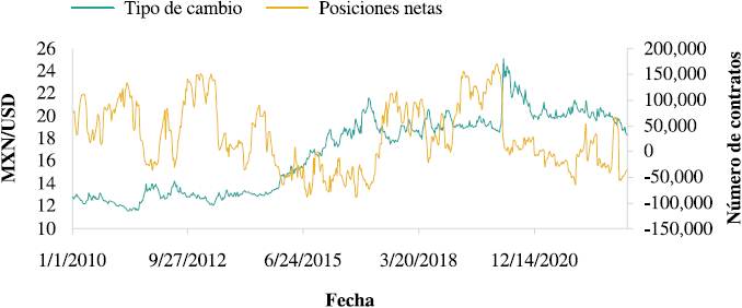 De acuerdo con Torre y Provorova (2007), las posiciones netas representan una aproximación alternativa de los indicadores fundamentales del tipo de cambio; es decir, las posiciones netas representan una medida más precisa de las expectativas de éstos sobre las variables económicas, basadas tanto en información pública como privada.