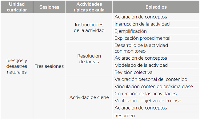 En total se analizaron 11 sesiones de clases correspondientes a dos unidades curriculares. La unidad de tercero básico denominada "Repre sentaciones de la Tierra" contempló 8 sesiones, mientras que la unidad de sexto básico "Riesgos y desastres naturales" consideró 3.