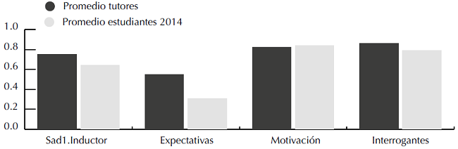 En resumen, los tutores presentaron indicadores superiores a los de sus tutorados, especialmente en los aspectos de carácter emocional más que cognitivo, como las expectativas y motivaciones, aunque es intere sante hacer notar que en ambos grupos este es el componente con menor desarrollo (figura 1).