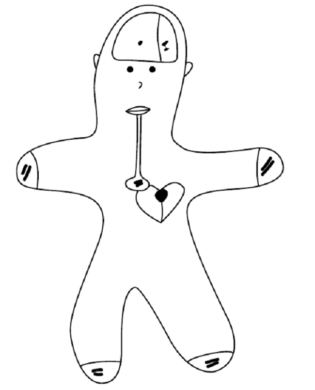 Após ter elaborado seu desenho, solicitei à professora-participanteque narrasse suas interpretações acerca da alocação que fizera das línguas de seu repertório linguístico na imagem de seu "corpo". Essa narrativa, também, foi gravada em áudio e, posteriormente, transcrita para a análise.