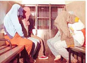 Asimismo, hay dos atributos que lo alejan de su condición de ciudadano: los rostros están ocultos y las manos esposadas. Se podría argumentar que legalmente están protegiendo la identidad, pero desde el punto de vista visual, el ocultamiento del rostro tiene otros efectos.