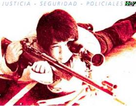 Este primer grupo de imágenes (imágenes 3 y 4) desde un plano medio distingue como elemento de mayor protagonismo un arma. Esto se materializa en la ubicación centrada y el tamaño dentro de la imagen. El recorrido visual está trazado por las figuras humanas que apuntan el arma hacia el fuera de campo. Así se produce un juego de miradas entre los sujetos fotografiados y el espacio no capturado que puede producir miedo o temor a ser apuntado con el arma.