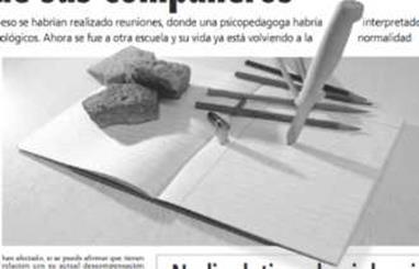 Sin autor. (12 de mayo de 2011). Rosario alumna fue agredida de una cuchillada por una compañera. Hoy , p. 6.