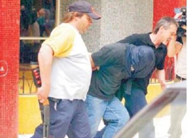 Como se analizó en producciones anteriores (Saez, 2014 y Saez, 2017b), observamos un proceso de asociación de sentido de las violencias en el espacio escolar con el delito y, al mismo tiempo, un proceso de personalización, producto del discurso individualizante, en el sentido de que se identifica al victimario como causante de la violencia. En este sentido, un tercer grupo de imágenes visibiliza sujetos con la cara tapada presentes en el centro del campo fotografiado (imágenes 9 y 10). Se trata de jóvenes que están siendo trasladados hacia algún lugar.