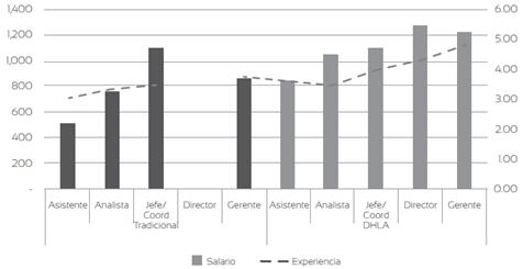 En la figura 2, se evalúan los salarios de los egresados de la formación dual y tradicional, considerando los cargos que desempeñan y los años de experiencia laborales. De esta manera se observa que los egresados de la dual poseen más años de experiencia y desempeñan cargos de jerarquía como gerentes, directores y coordinadores con un salario medio de USD 1253, que representa un 23 % más frente a los egresados de la tradicional. Así mismo, se aprecia un 62 % y 40 % más en los salarios de asistentes y analistas del programa dual.