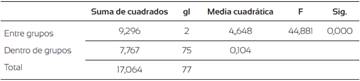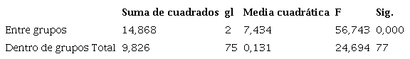 Para comprobar si estas diferencias son estadísticamente significativas, se llevó a cabo la prueba ANÜVA que permite comparar una misma variable en muchos grupos (Sáez, 2017), comprobando previamente que existía homogeneidad entre las medias a través de la prueba Brown- Forsythe, de la que se obtuvo el valor sig. 0,00 que indica que los grupos son homogéneos (tabla 6).
